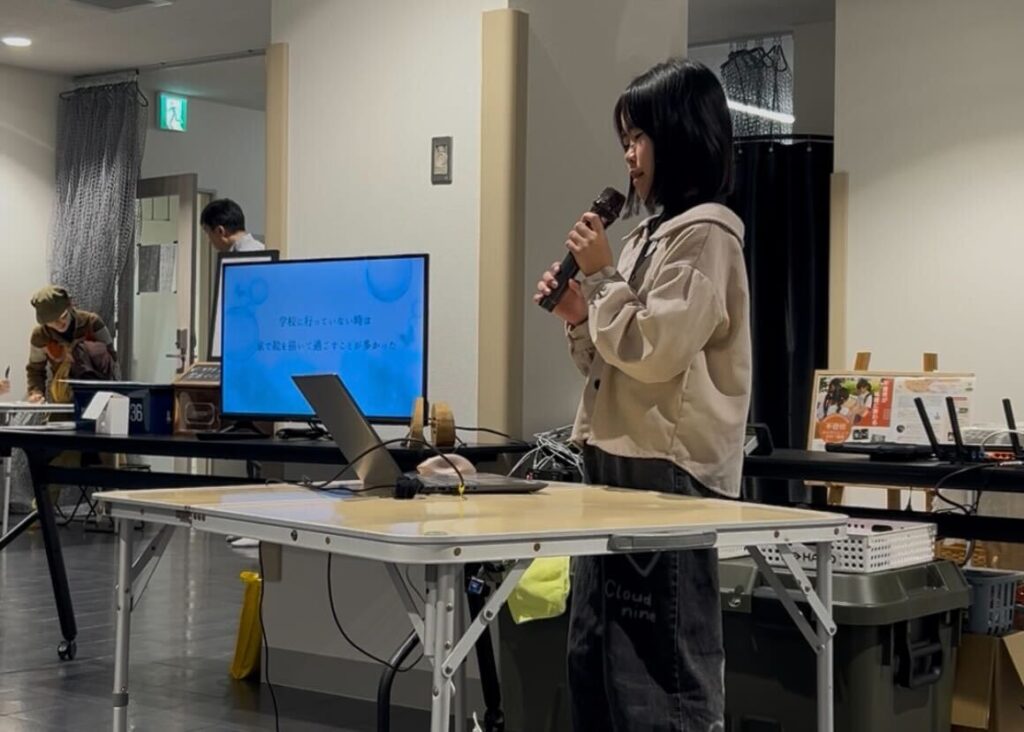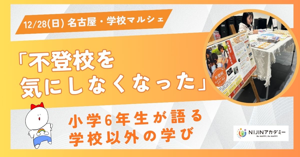 2025年12月28日、名古屋市で開催された「学校マルシェ」。会場の一角で、小学6年生の女の子がマイクを握りました。少し緊張しながらも、自分のペースで言葉を選び、これまでの経験と、今の学びについて静かに語っていきます。
