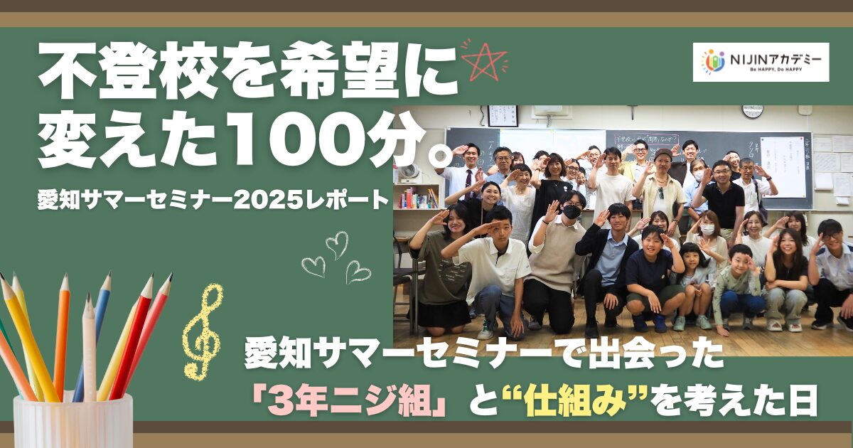2025年7月20日、名古屋市で開催された「愛知サマーセミナー2025」にて、NIJINアカデミーの星野達郎(タツロー校長)《不登校が希望に変わる》特別講座を実施しました。
