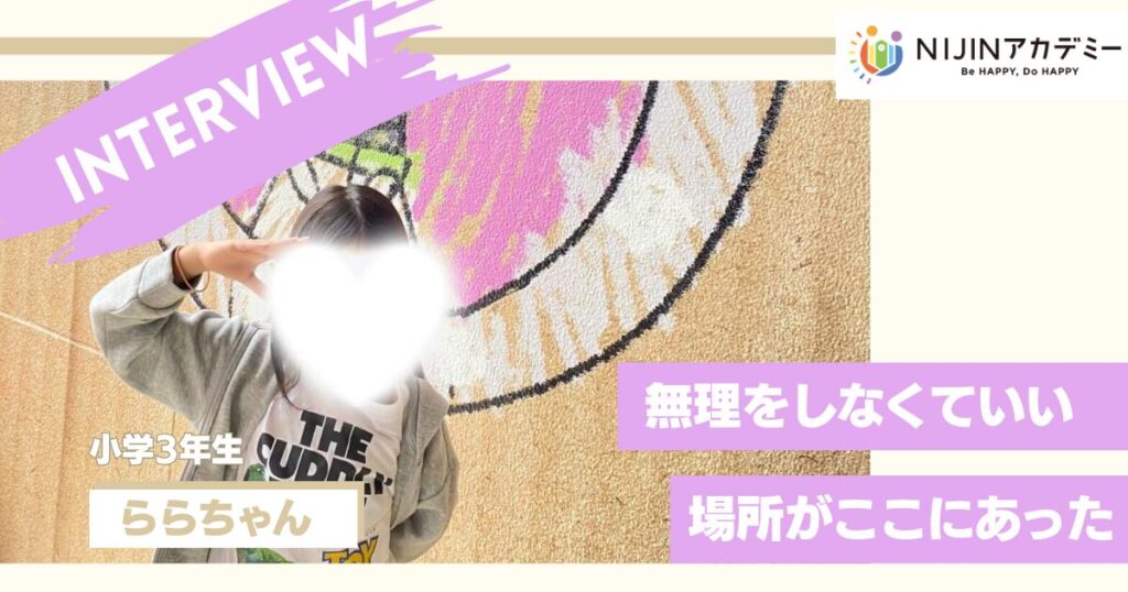 こんにちは。ボランティアスタッフのいっちーです。 「自分のペースで過ごせる今が楽しい」 そう話してくれたのは、小学3年生のららちゃん。 2025年3月からNIJINアカデミーに通いはじめ、まもなく1年が経とうとしています。 今は夜の授業に参加をしたり、... -