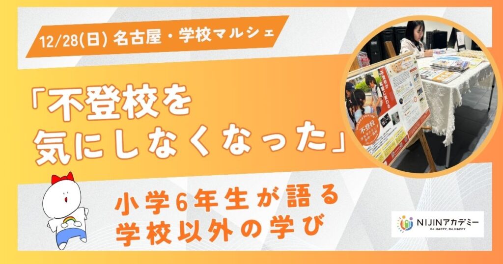 2025年12月28日、名古屋市で開催された「学校マルシェ」。会場の一角で、小学6年生の女の子がマイクを握りました。少し緊張しながらも、自分のペースで言葉を選び、これまでの経験と、今の学びについて静かに語っていきます。 この日登壇したのは、不登校... -