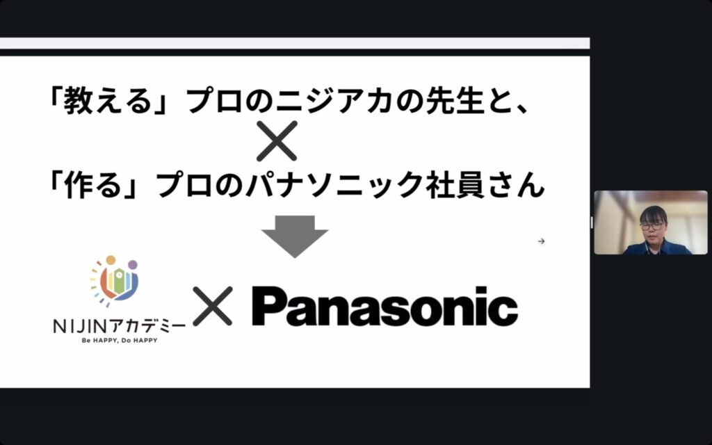 宮島さんとNIJINアカデミーのタツロー校長が名刺を交わしたのは、2024年6月。その翌月には、宮島さんが以前在籍していた Panasonic での社会科見学が実現しました。その後も、ブーストコンテストの審査員として子どもたちの発表に関わるなど、交流は自然と広がっていきます。