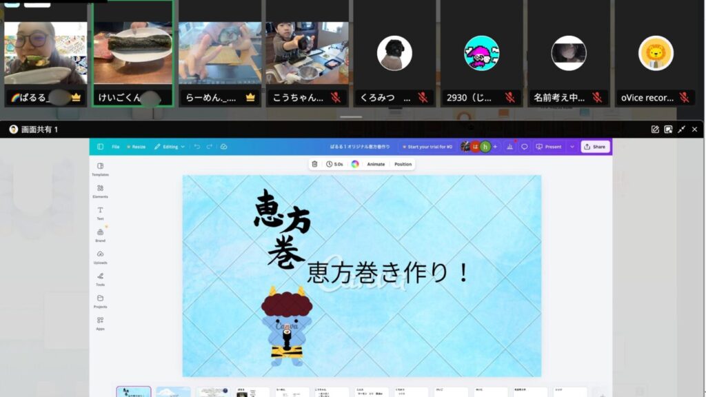 ▲けいごくんがクラスで企画した、オリジナル恵方巻づくりの写真