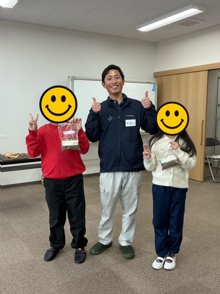 (左:けいごくん/中央:日本オーガニック社長/右:けいごくんの妹)