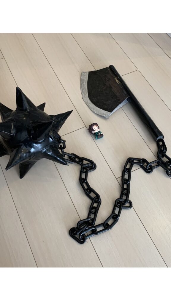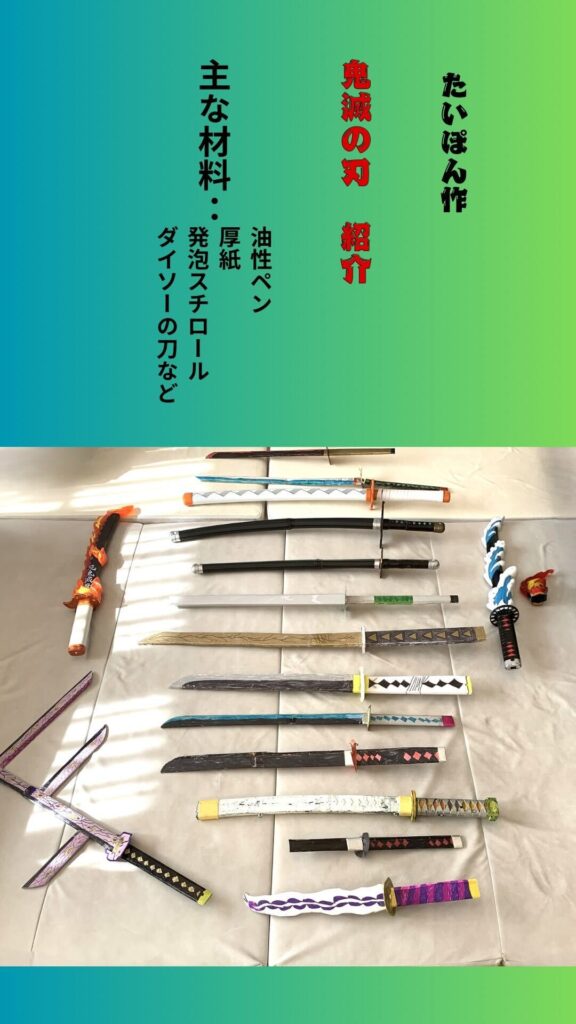 ▲大好きな『鬼滅の刃』の刀を自ら手作りした