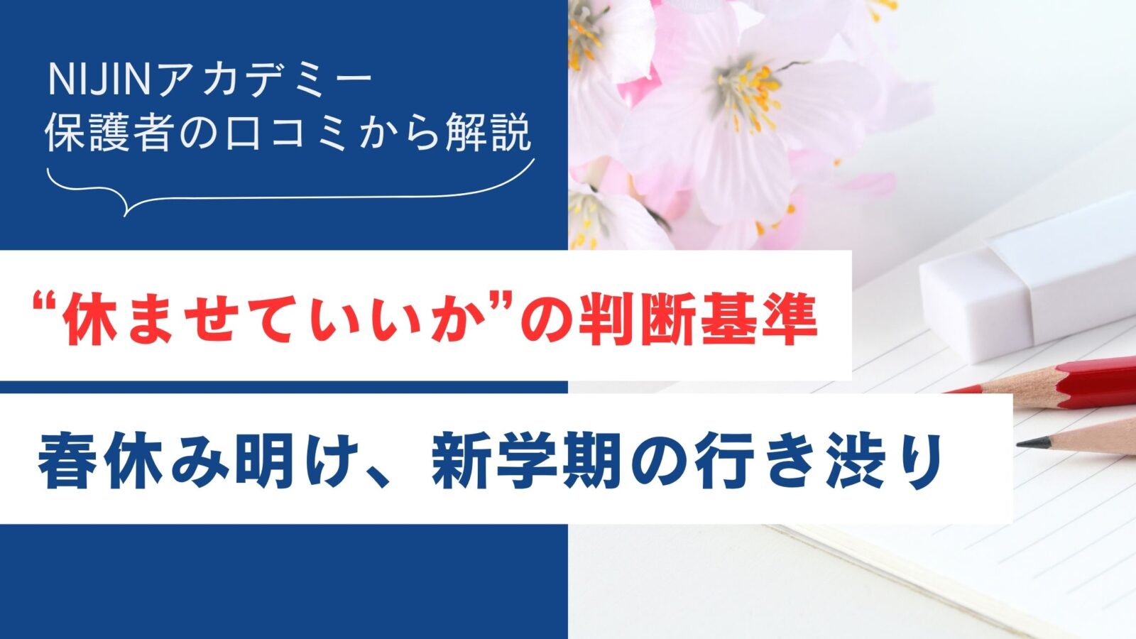春休み明け、新学期の行き渋りは珍しいことではありません。主に次の3つの理由があります。