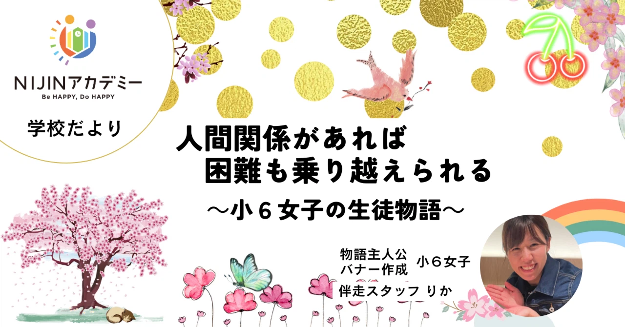 「先生のおかげです。いい出会いに恵まれました。人間関係があれば困難も乗り越えられるという安心感をもちました。これから中学になっても3年間ニジアカを続けます」