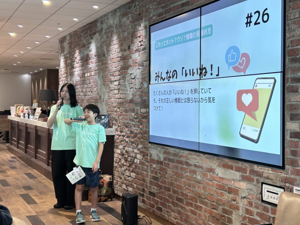 たくさんのNIJINアカデミー生とお話ししたり交流することができてとても楽しくたくさんのパワーをもらいました!企業PRの時間には、Adoraを担当してくれたしゅんしゅん君をはじめ、学年に関わらず全員が自分の言葉でクオリティーの高いプレゼンをしていて、一人一人のレベルの高さにも大変驚きました。また、しゅんしゅん君と一緒に開催した「ITリテラシービンゴ大会」では、たくさんのNIJINアカデミー生と保護者の方々が積極的に参加してくださり、とても嬉しかったです。まだスマホを持っていない子から保護者の方も含めてネットに潜む危険や思わず「へえ〜!」と声が上がるような豆知識まで一緒に学ぶ機会を持てたことがとても思い出に残っています。こどもたちの安全なスマホやタブレットの利用を支援していくだけでなく、こどもたちが自立してスマホやタブレットを安全に使う術を身につけられるような機会をこれからも持っていけたらいいなと思っております!