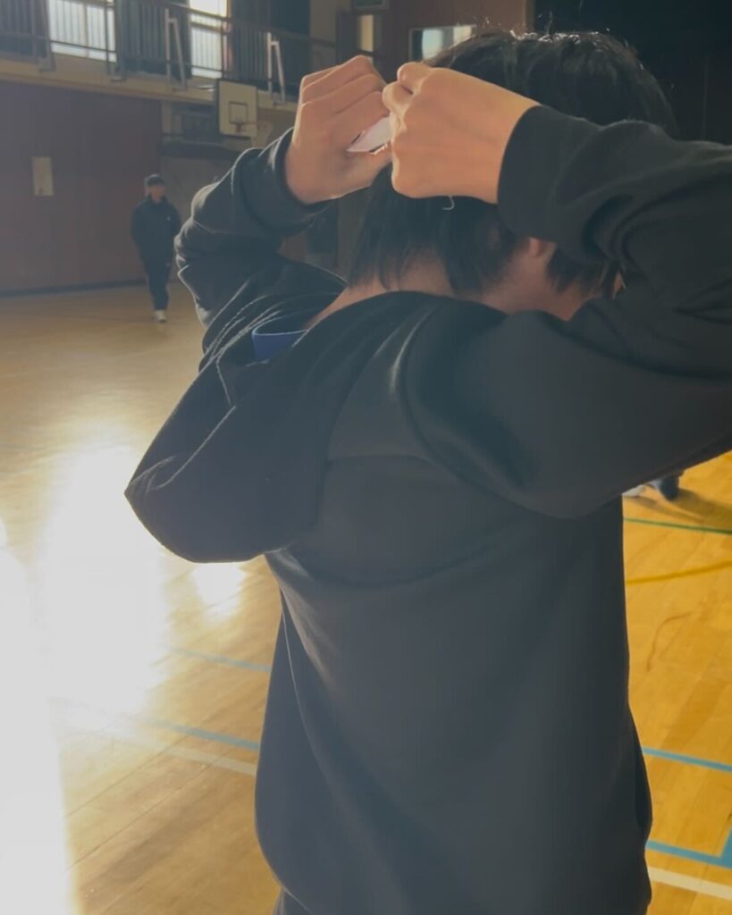 体育館に入れるようになると、荷物の配置、得点表の作成、種目の掲示など、運営準備が始まります。一見すると単純な作業ですが、「どうしたら分かりやすいか」「ここに貼った方が見える」といったやりとりが自然と生まれ、会場には笑い声が広がっていきました。