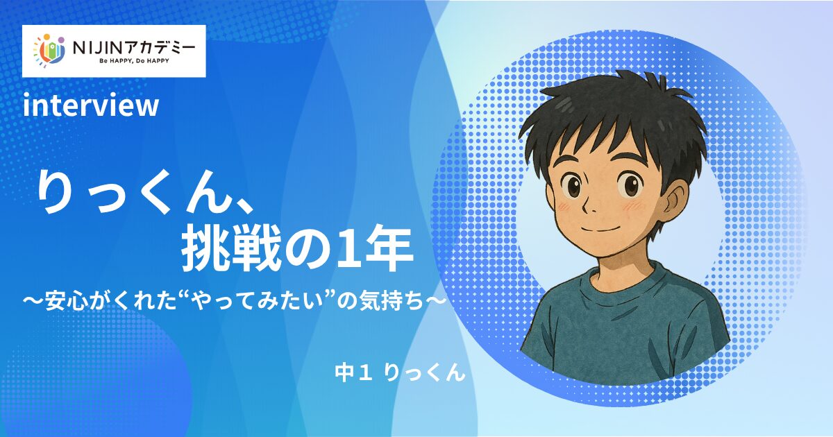 今回インタビューさせていただいたのは、中学1年生のりっくん。NIJINアカデミーに通い始めたのは小6の6月。