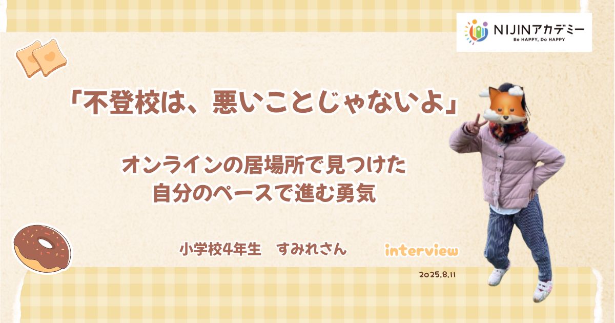 かつてはPCの前で心を閉ざし、「死んだような目をしていた」と語るすみれさん。NIJINアカデミーと出会い、彼女の世界はどのように変わっていったのでしょうか。隣でお母様にも、当時の心境や今のすみれさんの様子を伺いました。